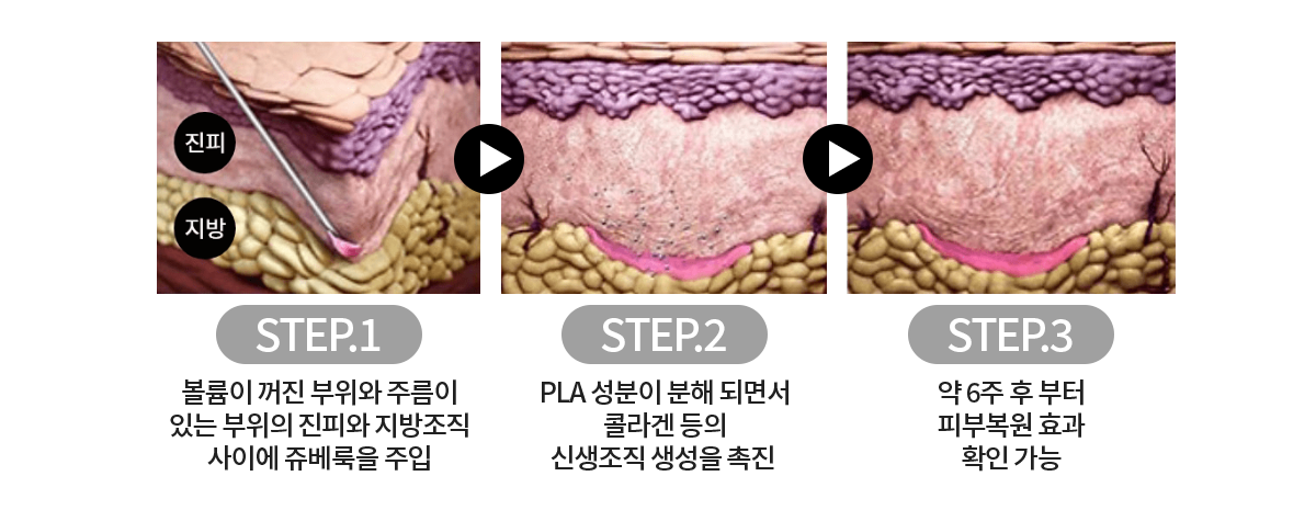 콜라겐 재생이 되면서 꺼진 부위가 자연스럽게 채워지고