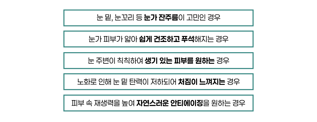 눈가 잔주름 개선과 눈밑 꺼짐, 다크 써클 개선에 효과적이라
